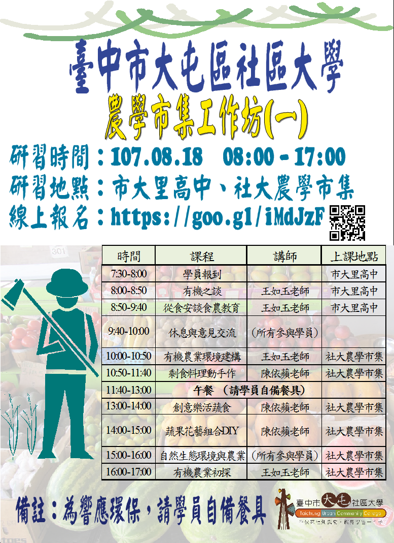 臺中市大屯區社區大學農學市集工作坊 一 Beclass 線上報名系統online Registration Form For 移動裝置 活動日期 2018 08 18