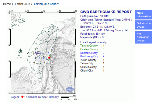 Magnitude 4 5 Earthquake Shakes Eastern Taiwan Focus Taiwan